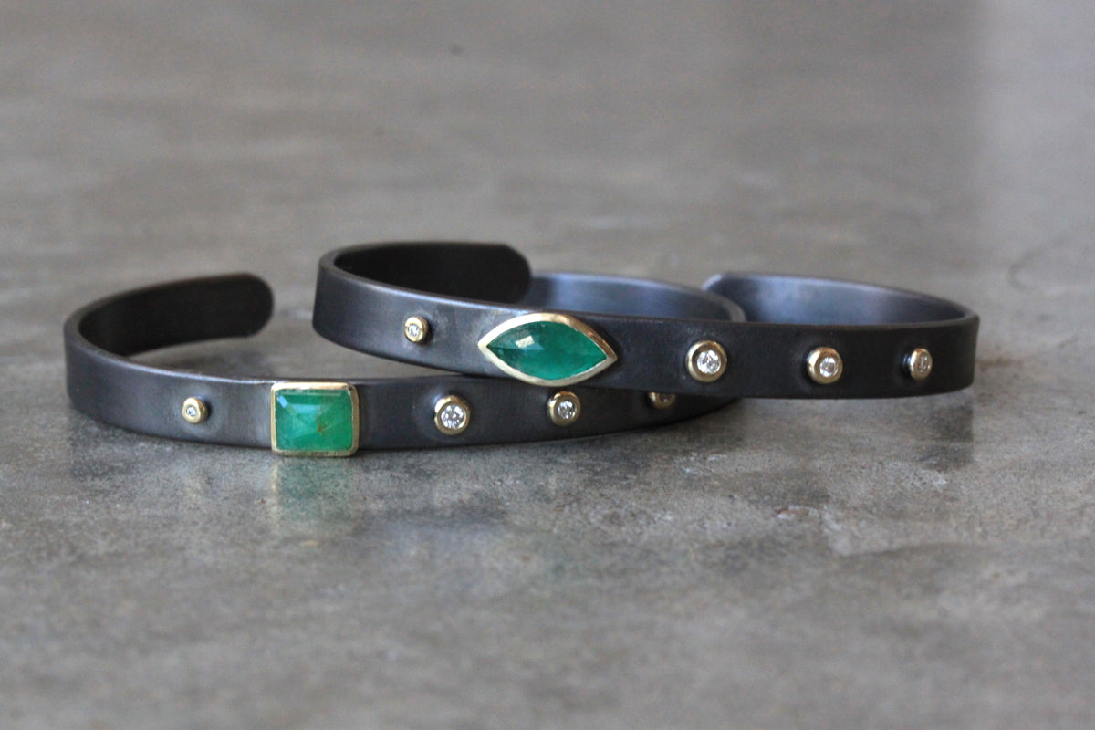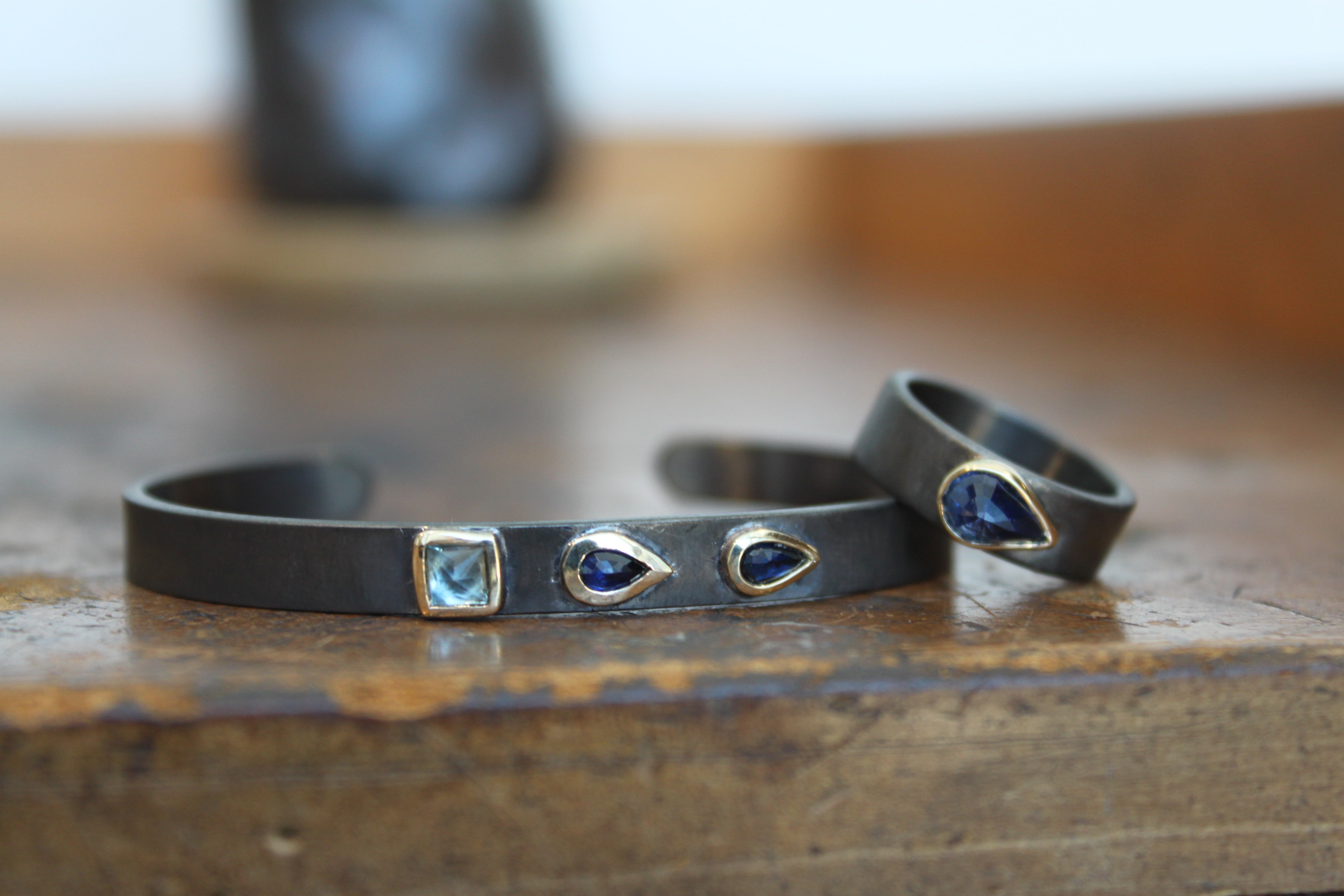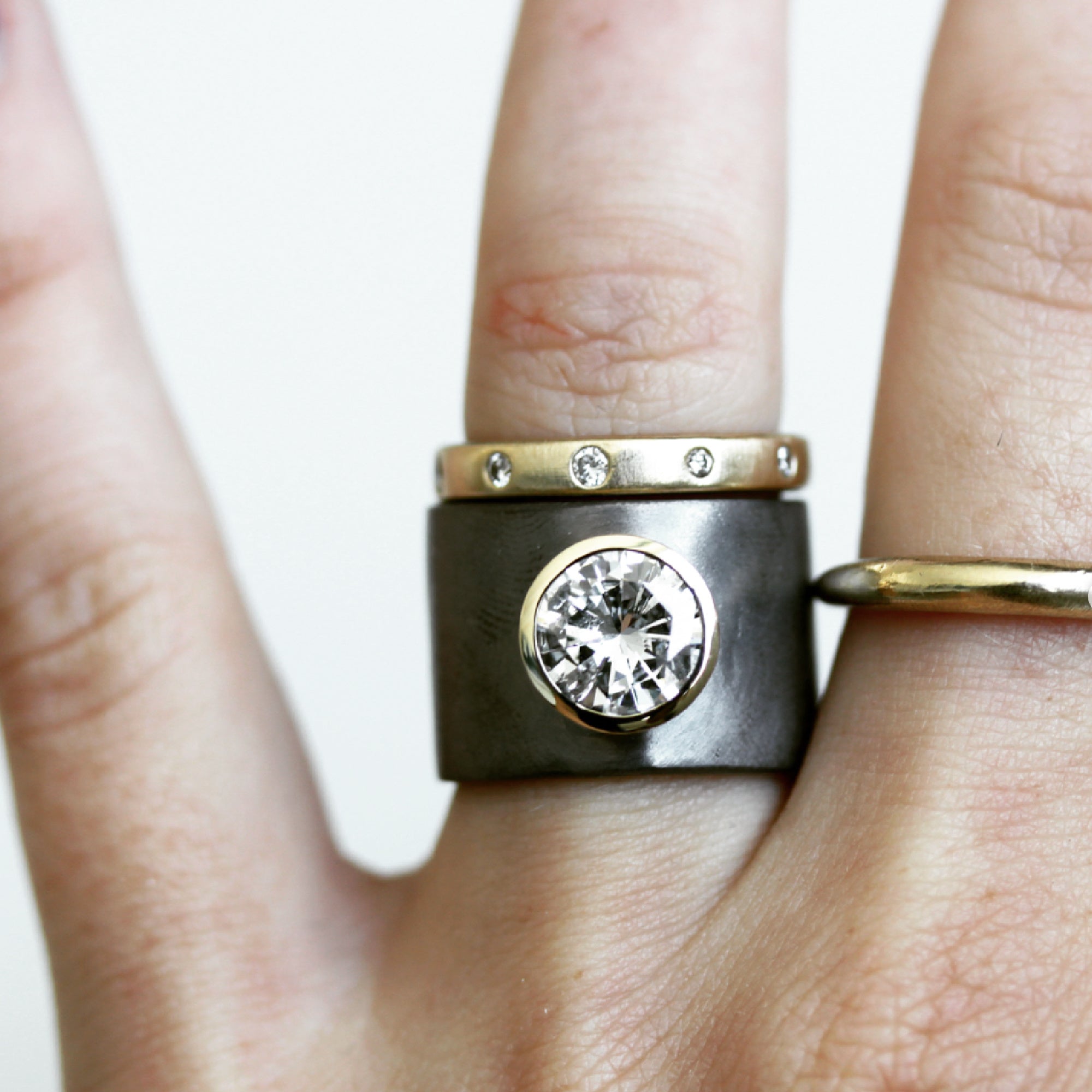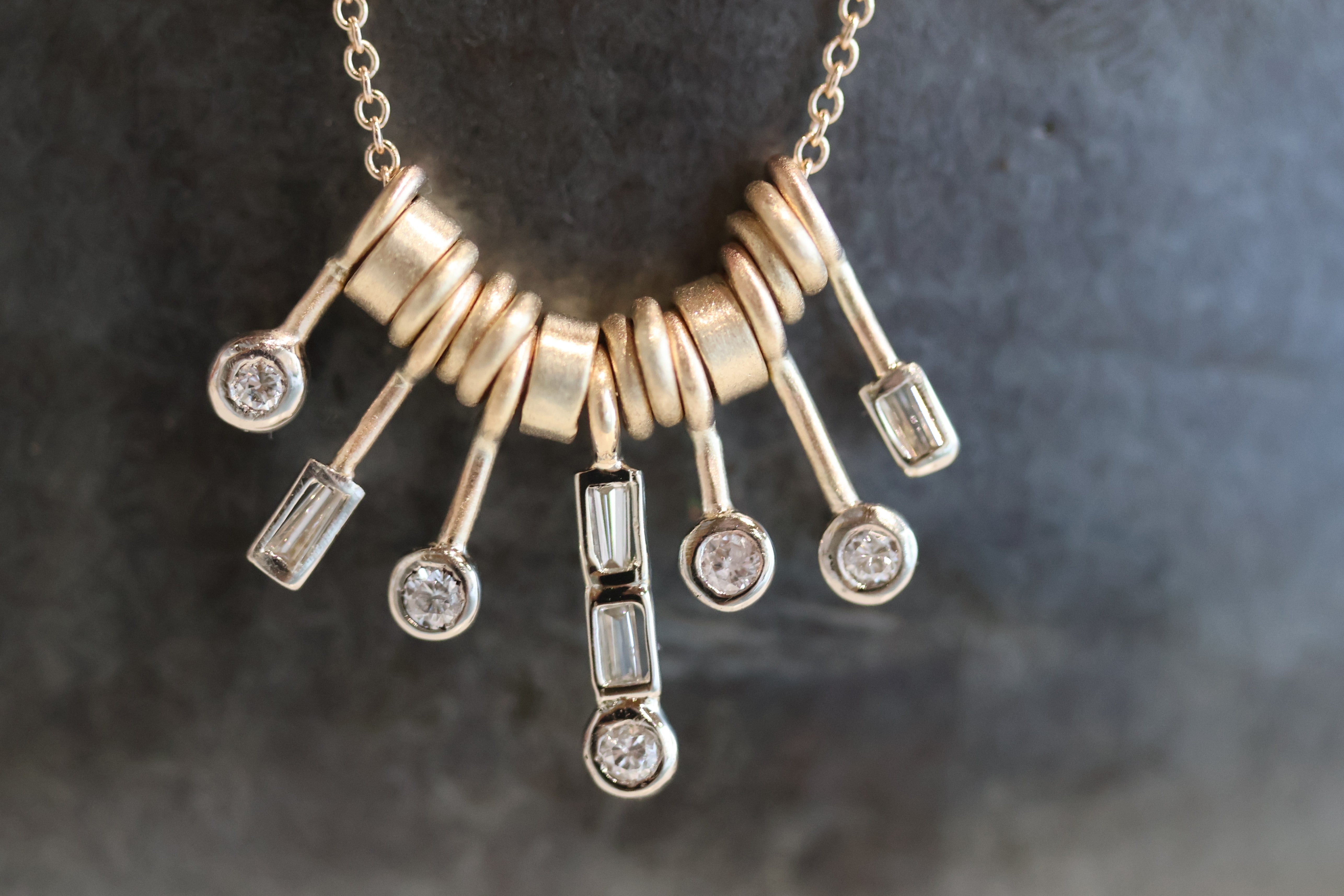 Dive into our custom jewelry collection and get inspired to create your very own piece. Rebecca's work is designed, created, and forged at her studio located in historic Houston Heights, Texas. Come visit our studio. We'd love to get to know you and start your next piece.
