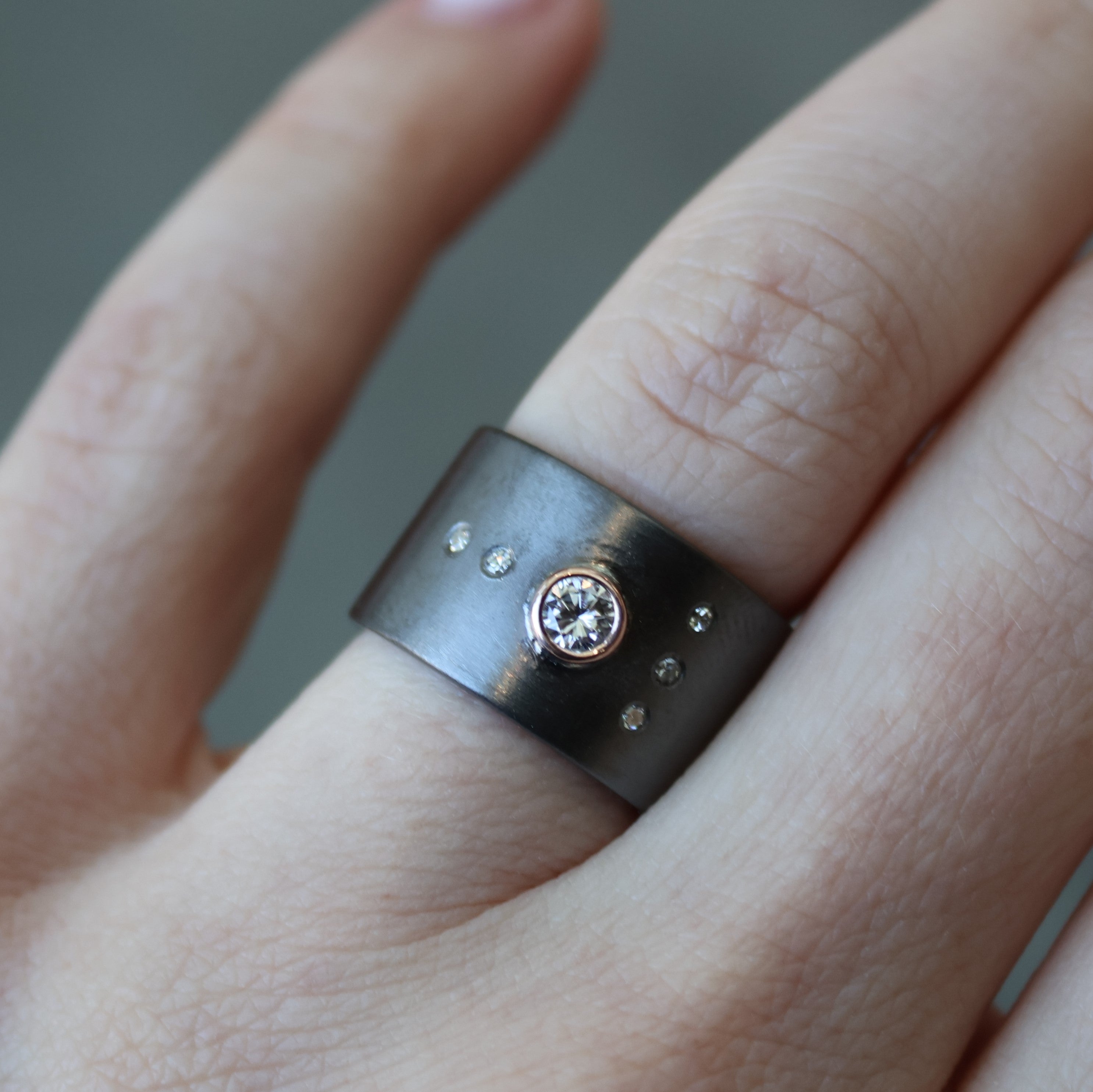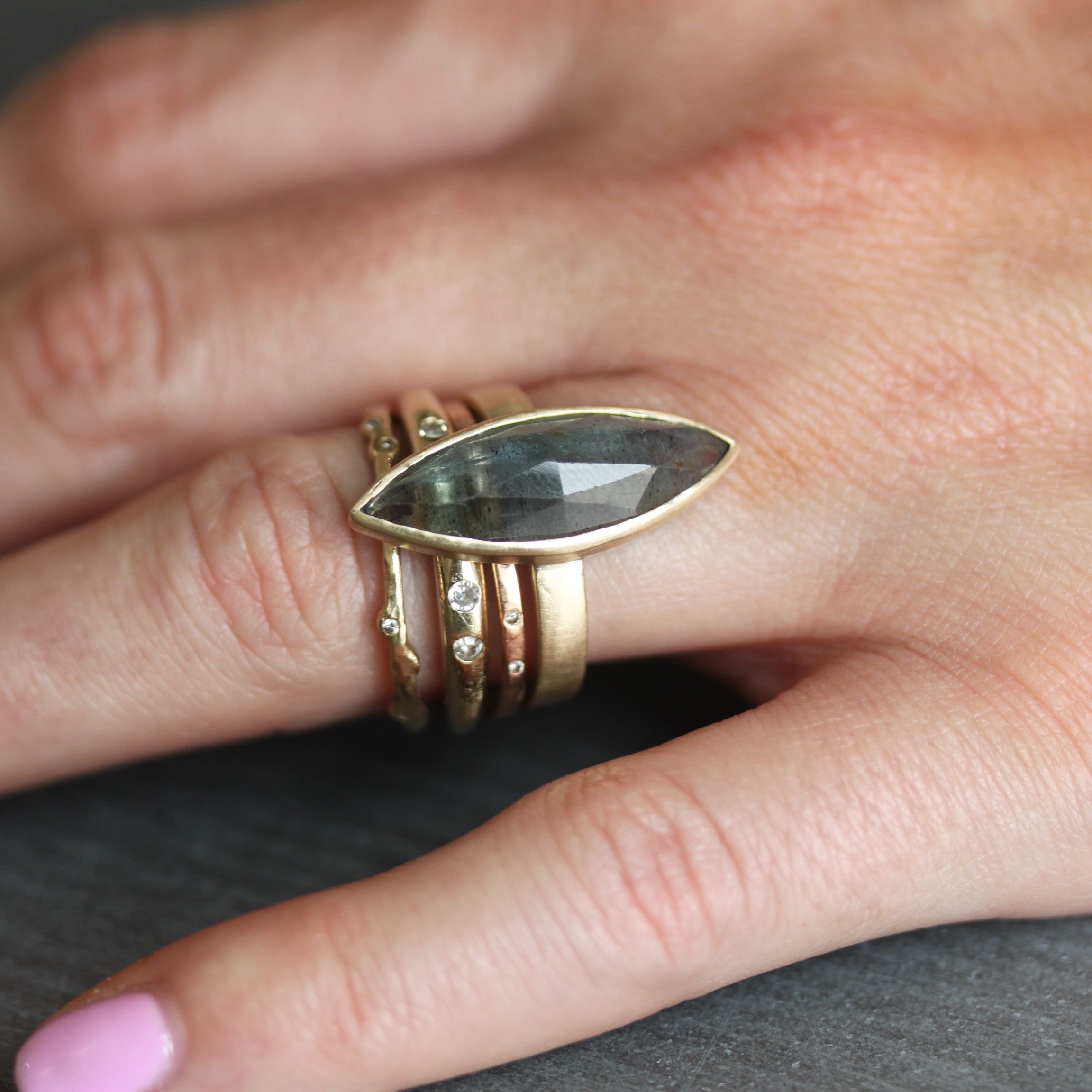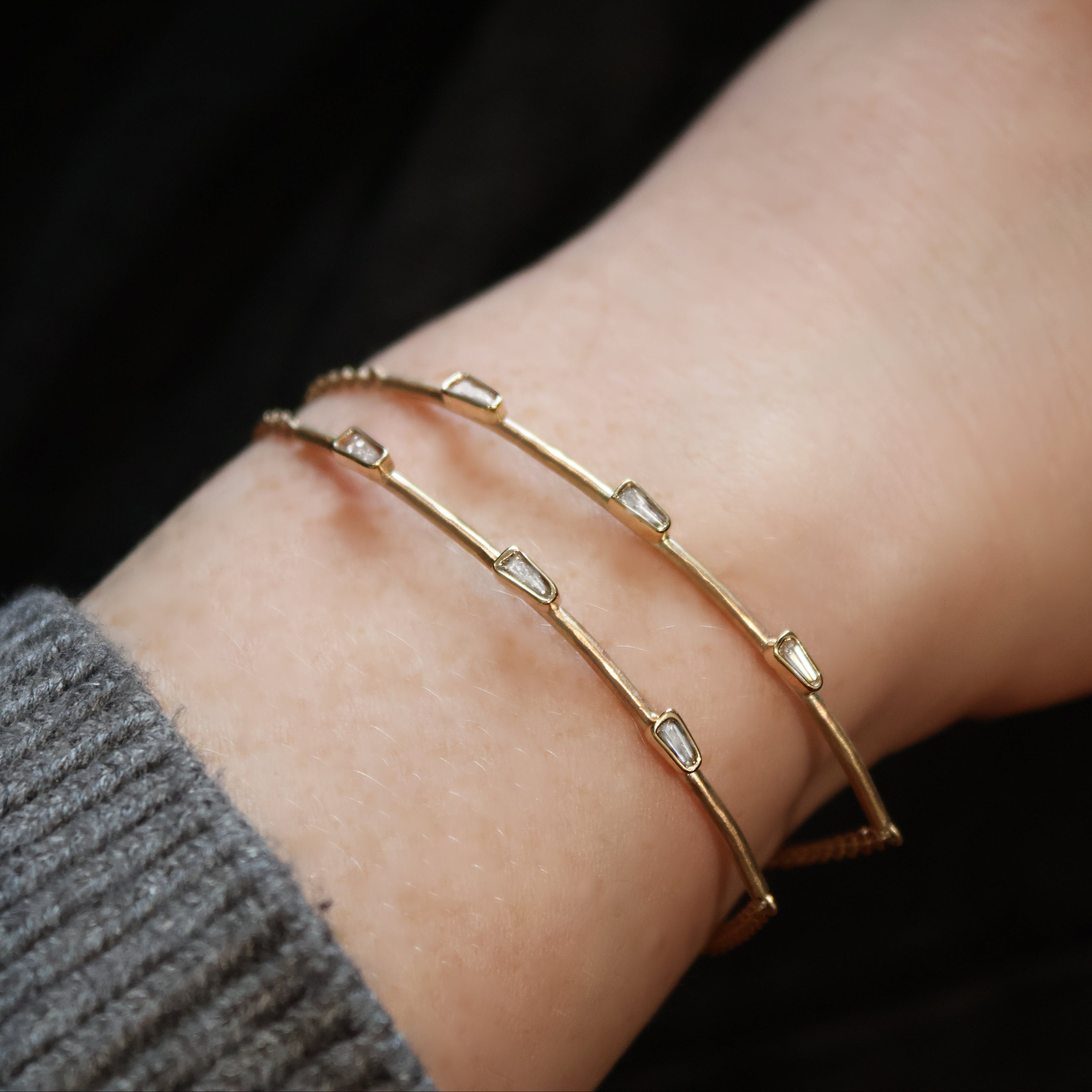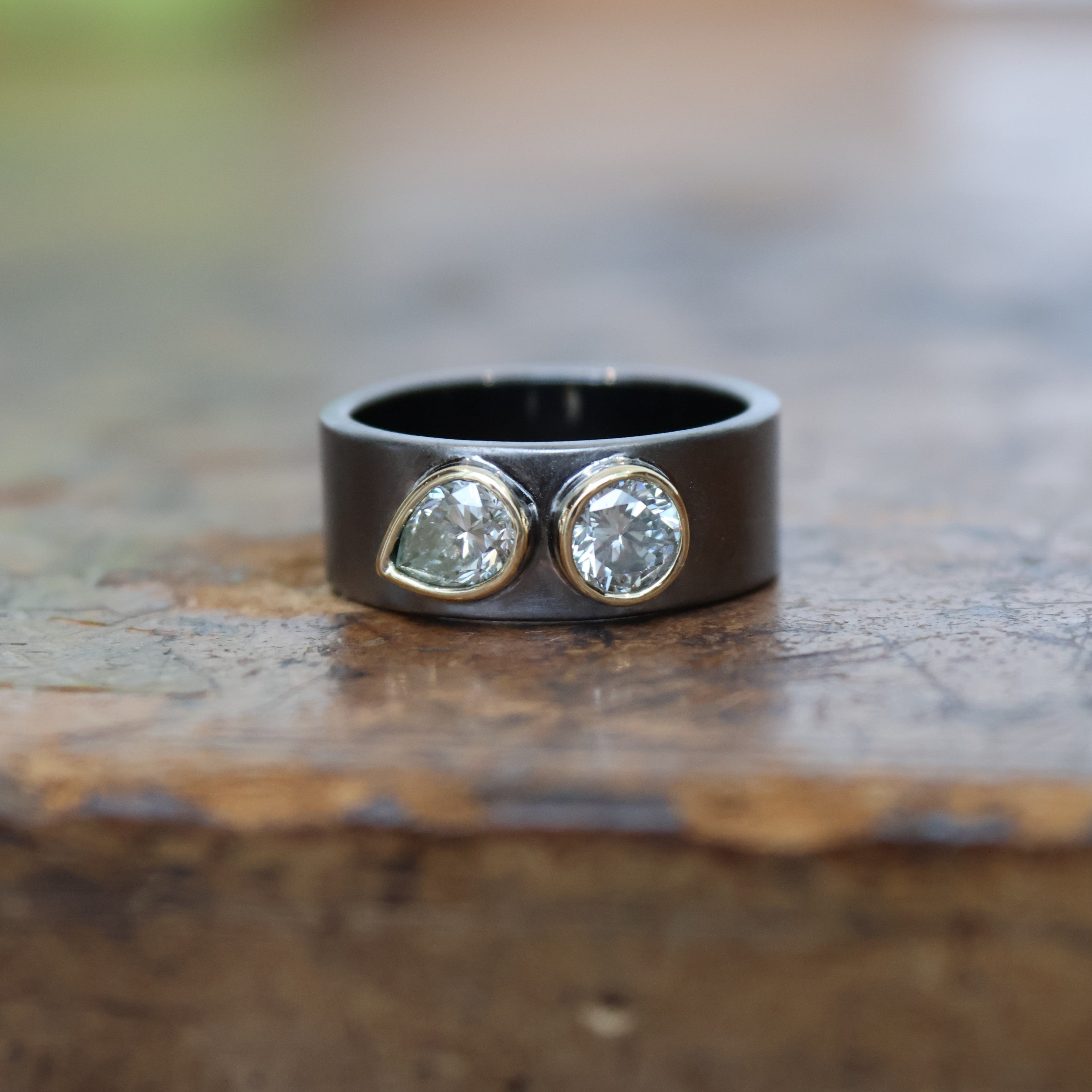 Dive into our custom jewelry collection and get inspired to create your very own piece. Rebecca's work is designed, created, and forged at her studio located in historic Houston Heights, Texas. Come visit our studio. We'd love to get to know you and start your next piece.